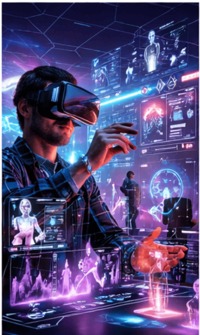 In these environments, people could attend meetings, collaborate with colleagues, participate in virtual conferences, or explore digital marketplaces. Educational institutions might conduct fully immersive virtual classes where students interact with complex simulations and interactive environments.