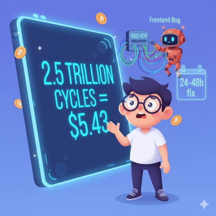 Dexter recently drew attention to a confusing display on CycleOps, where purchasing Cycles for 1 ICP showed 2.5 trillion Cycles valued at roughly $5.43, even though the current market price of ICP is around $3.71. He took to Twitter to ask how the numbers were calculated and suggested that a possible issue with the oracle might be responsible for the mismatch.