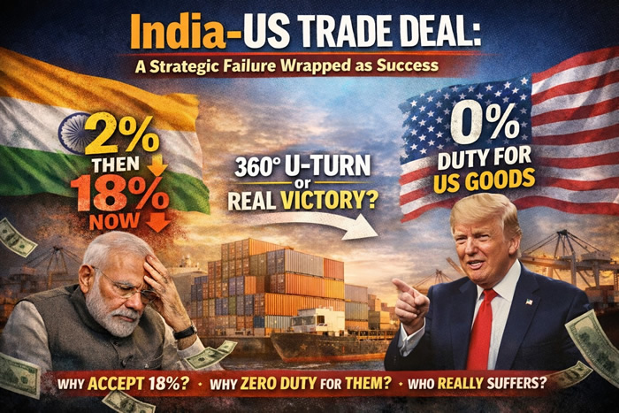 The recent trade deal between India and the United States is being sold as a “positive reset” and a “pragmatic win”. In reality, it exposes a serious failure of trade strategy, followed by a forced surrender dressed up as diplomacy.